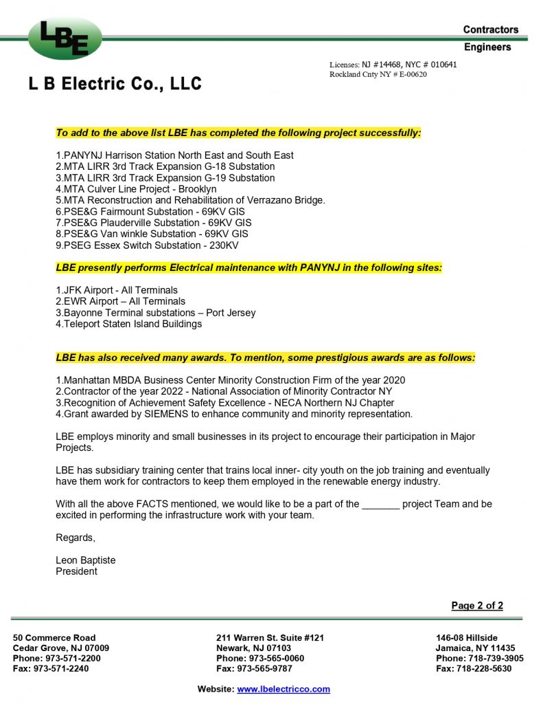 In 2006, Leon purchased a 20,000 sq. ft. building, in Cedar Grove, NJ that serves as LB Electric’s corporate headquarters. Leon also serves as president and CEO of LB Training Center.